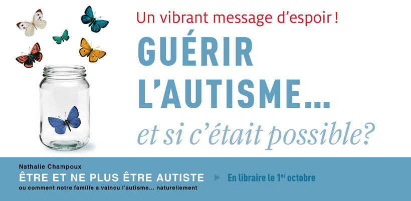 Voici un nouveau livre très important qui mérite d’être lu par tous, que l’on soit en santé ou non : Être et ne plus être autiste ou comment notre famille a vaincu l’autisme naturellement (éditions Fides, 2015). L’auteure, Nathalie Champoux, une maman de 36 ans, y raconte la descente aux enfers de sa famille et la rémission — confirmée par plusieurs spécialistes — de ses deux enfants.