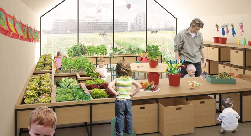 Non seulement les enfants de l’école, appelée « Fields Nursery Forever » apprennent l’énergie durable à partir des panneaux solaires et des éoliennes, mais l’ensemble du campus de l’école est conçu pour apprendre à cultiver aux enfants.