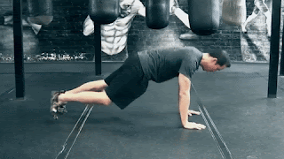 Faites une pompe normale mais soulevez un genou et amenez-le vers le coude qui se trouve du même côté que le genou levé lorsque vous remontez (comme Spiderman qui escalade un mur). Changez de genou à chaque répétition.